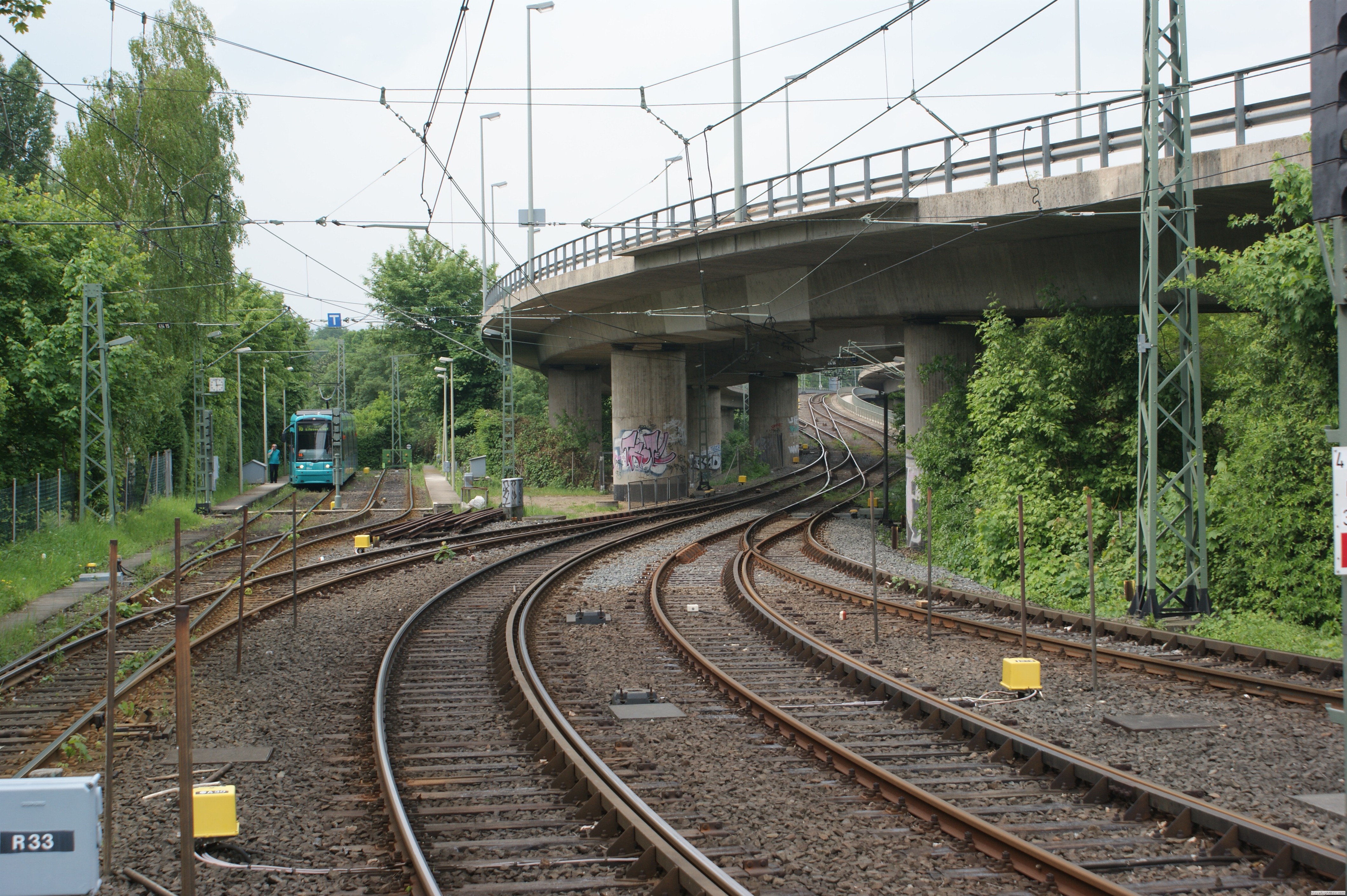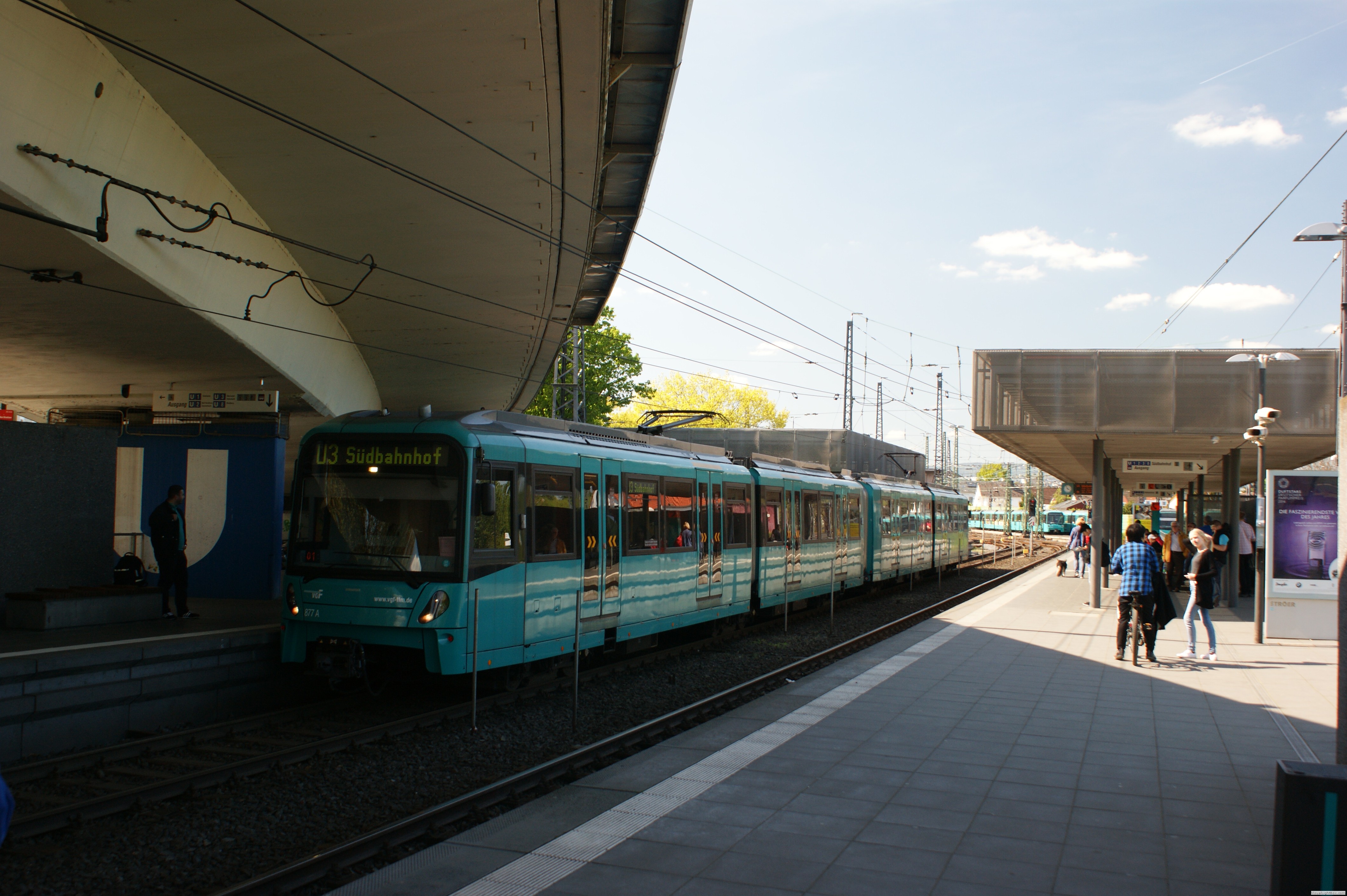 Die bereits geplante Verlängerung zur Sachsenhäuser Warte fiel der Wiedervereinigung zum Opfer. Richtung Norden erreicht sie immer noch am Dornbusch das Tageslicht. Die ursprünglich als Provisorium gedachte oberirdische Strecke bis zum Weißen Stein hat weiterhin Bestand, eine Verlängerung des Tunnels ist nicht abzusehen. Das andere Ende, die Wendeanlage am Südbahnhof gibt es auf dieser Seite auch zu bestaunen