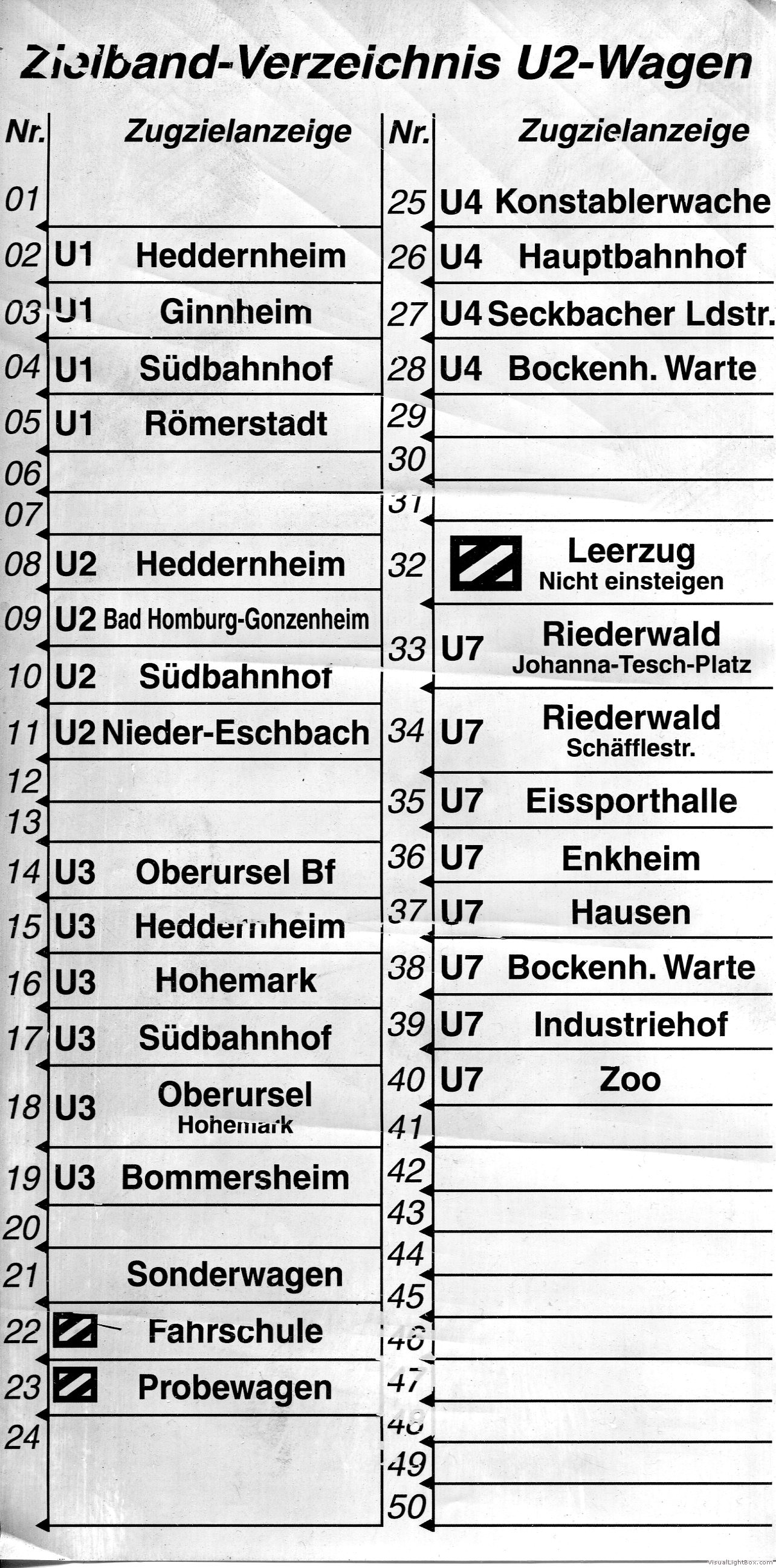 Zu Beginn verkehrte sie zwischen Hauptwache und dem neuen Stadtteil Nordweststadt.Auf dieser Strecke verkehrten auch die Taunusbahnlinien nach Oberursel / Hohemark und nach Bad-Homburg.