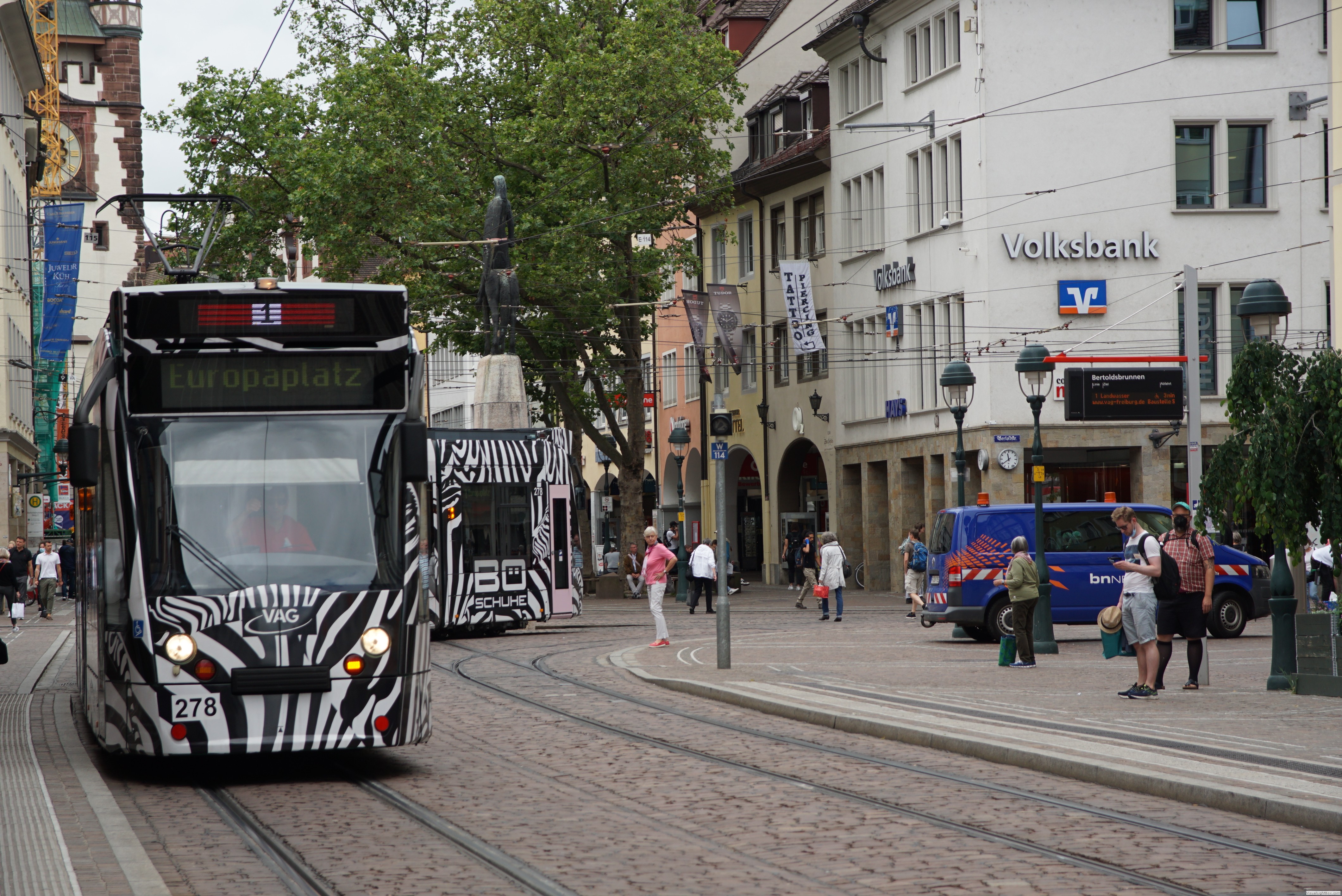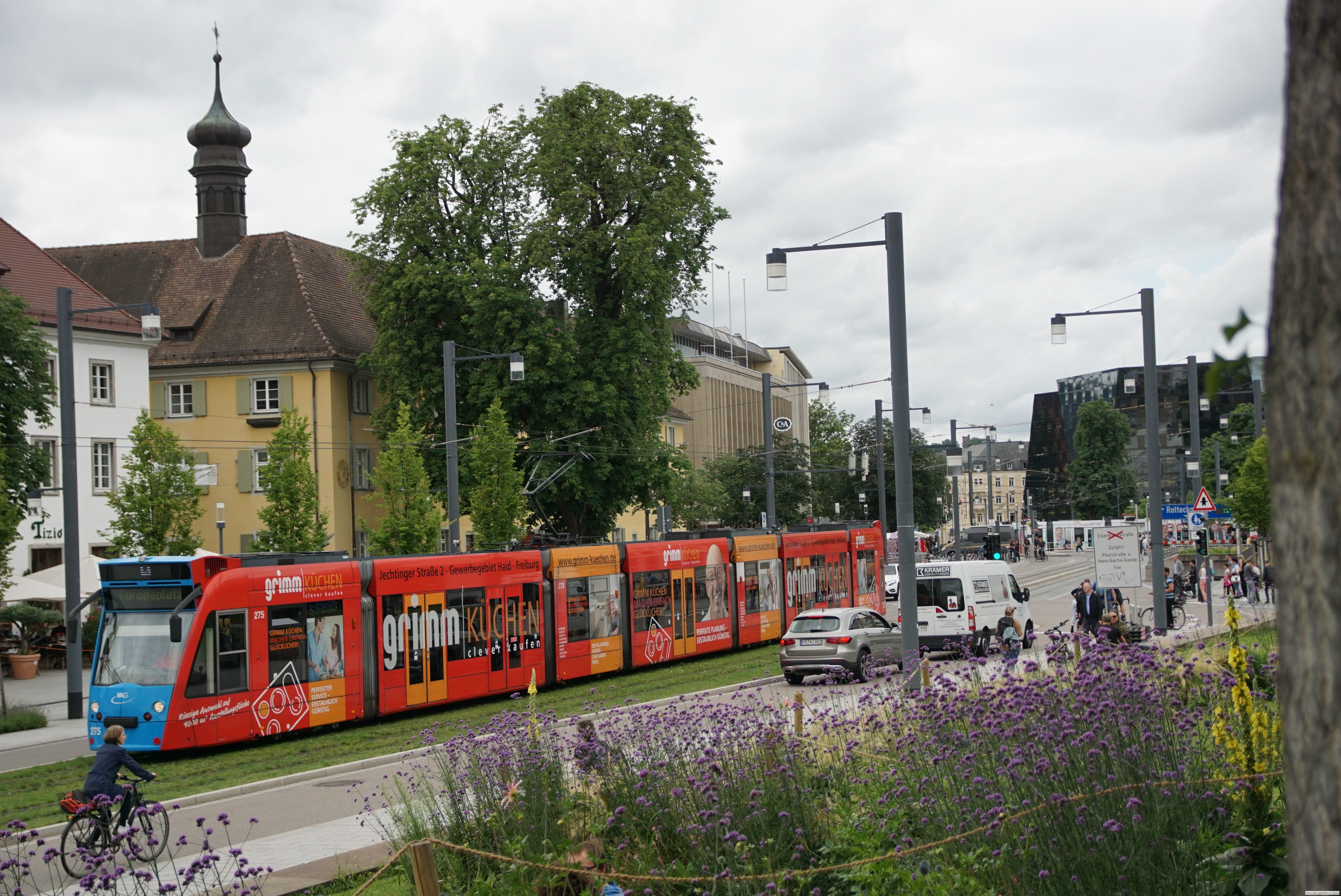 Im jahr 1901 fur die erste "Hobbl" in Freiburg im Breisgau. Vom ersten Tag an war die Straßenbahn elektrifiziert.Das Netz erfuhr ständig Erweiterungen und hat aktuell eine Länge von ca. 36 Km.Die 76 Triebwagen verschiedener Hersteller (DUEWAG, Siemens, CAF) bewegen sich auf Meterspur.5 Linien werden bedient.