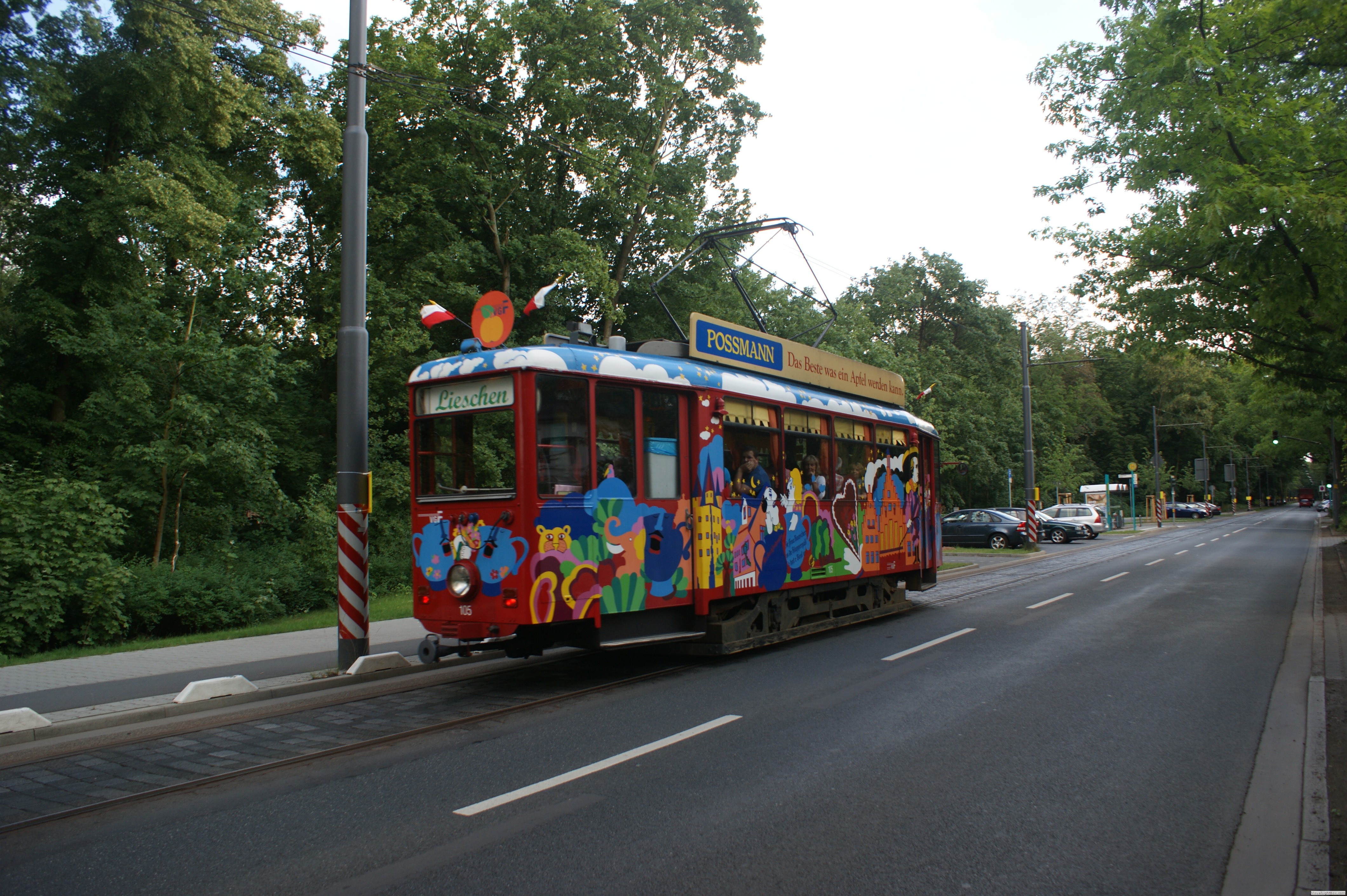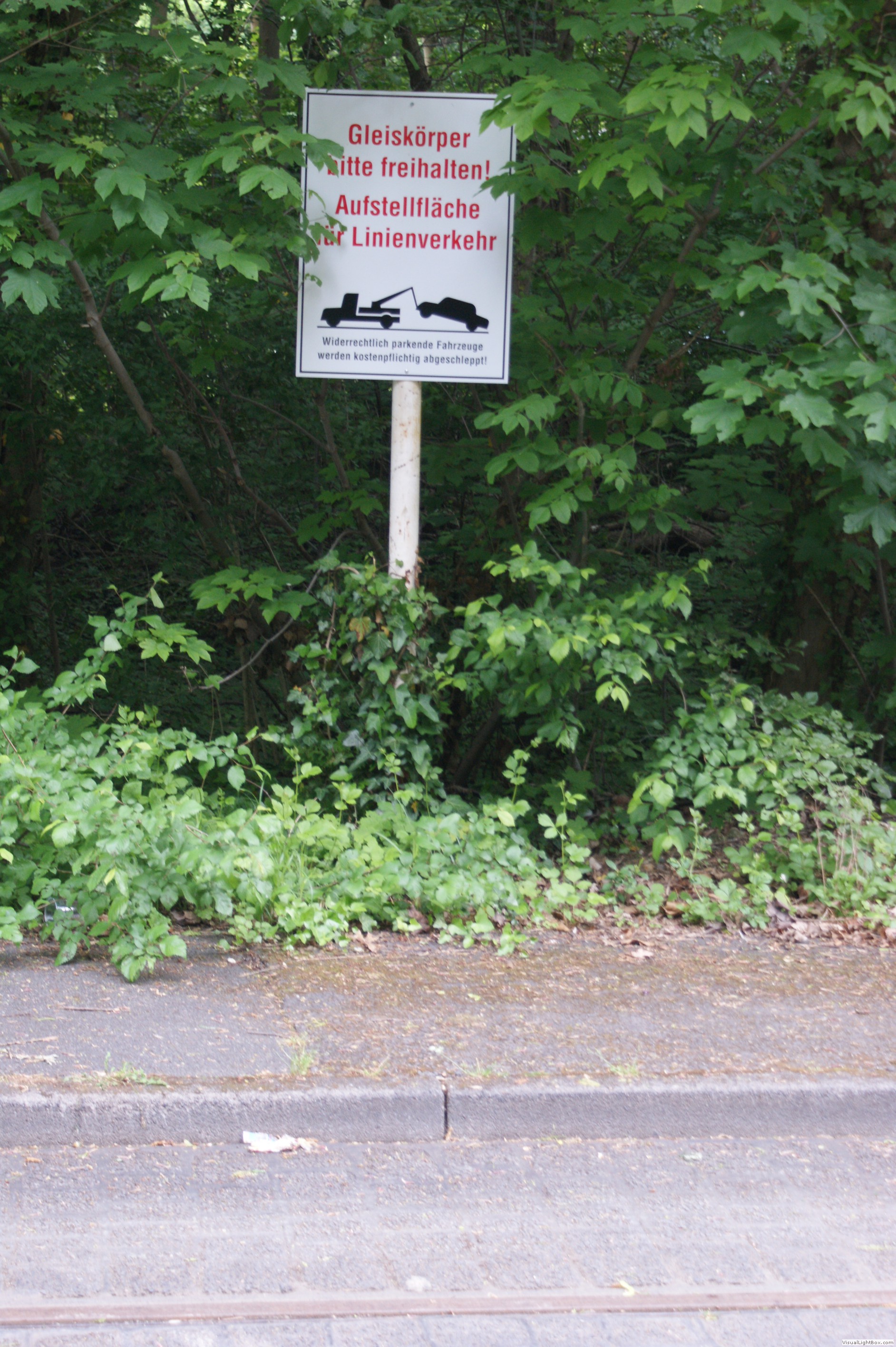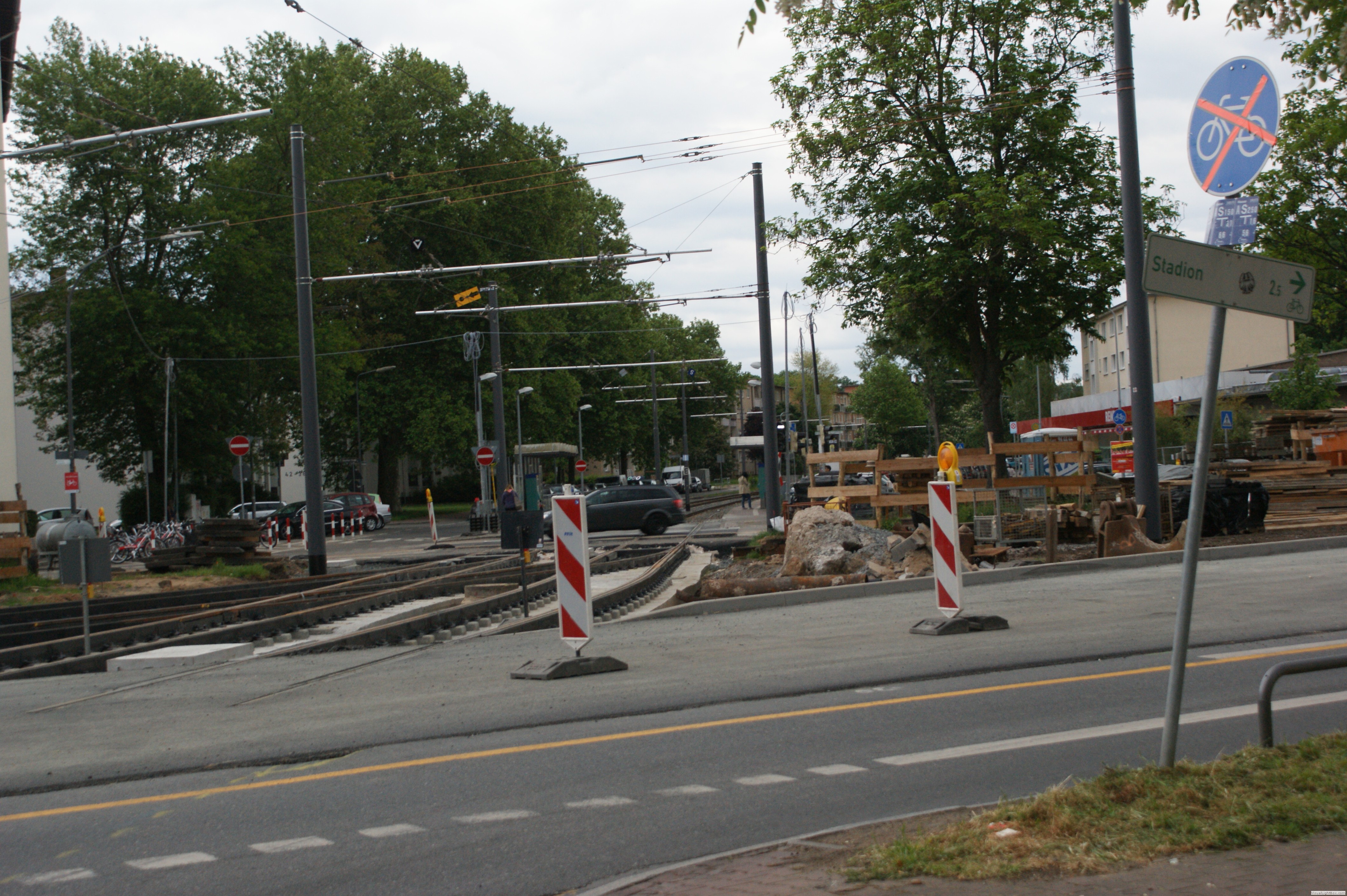 Der Umstand, dass an nur diesem Wochenende dort Schienenverkehr stattfand, machte es erforderlich an jedem Oberleitungsmast ein gelbes Hinweisschild zu montieren das auf den Straßenbahnbetrieb hinwies um zu verhindern, dass das Gleis zugeparkt wurde.