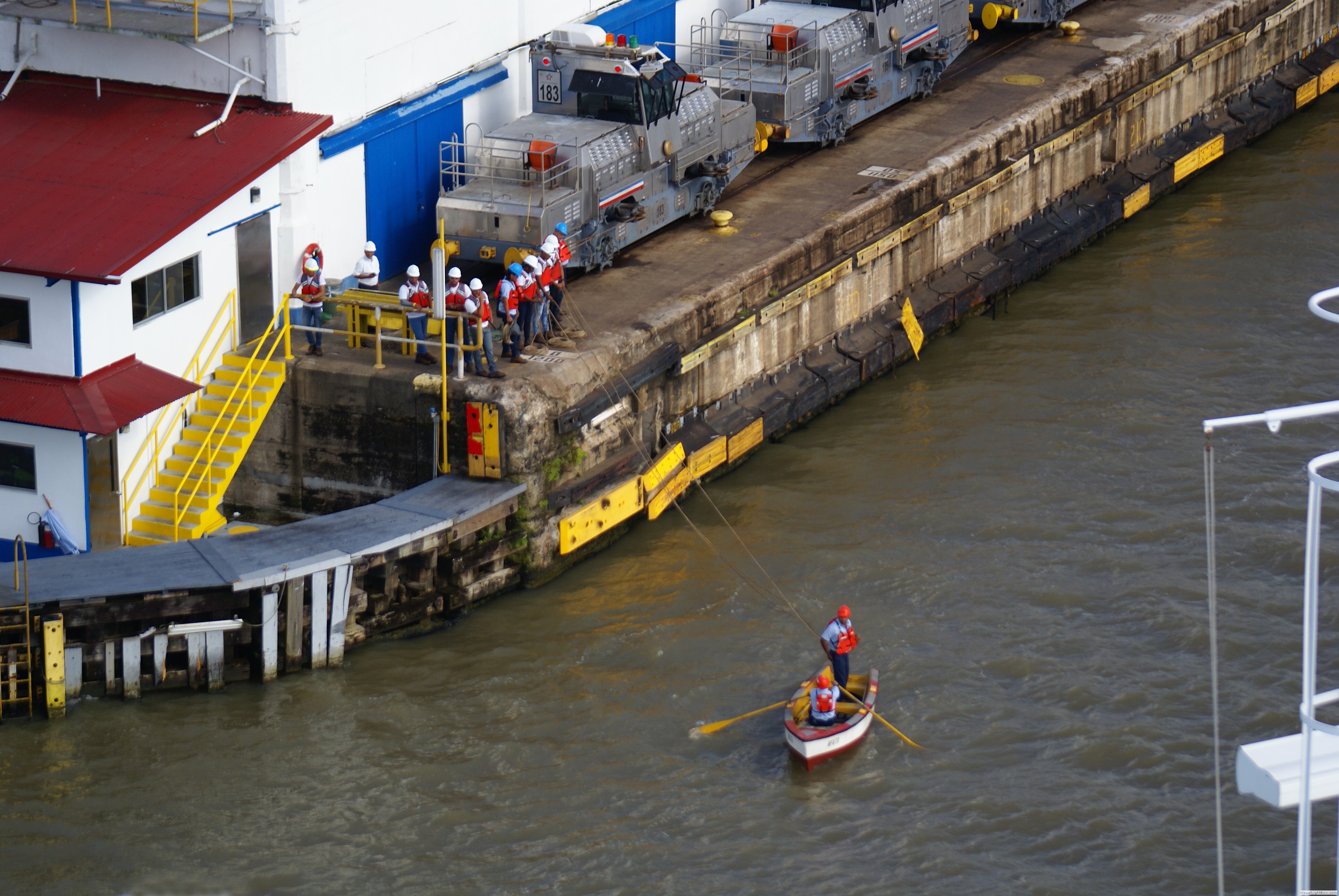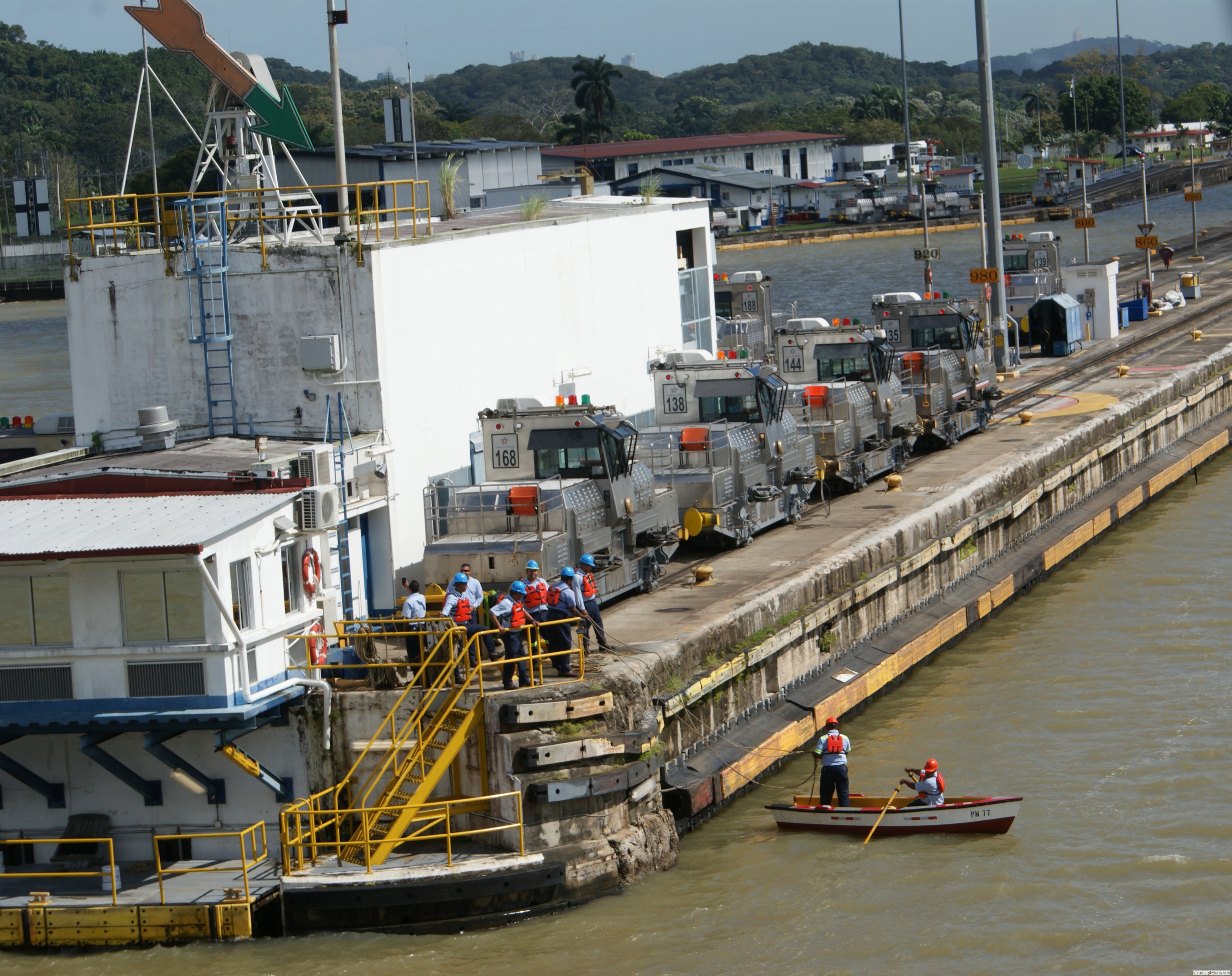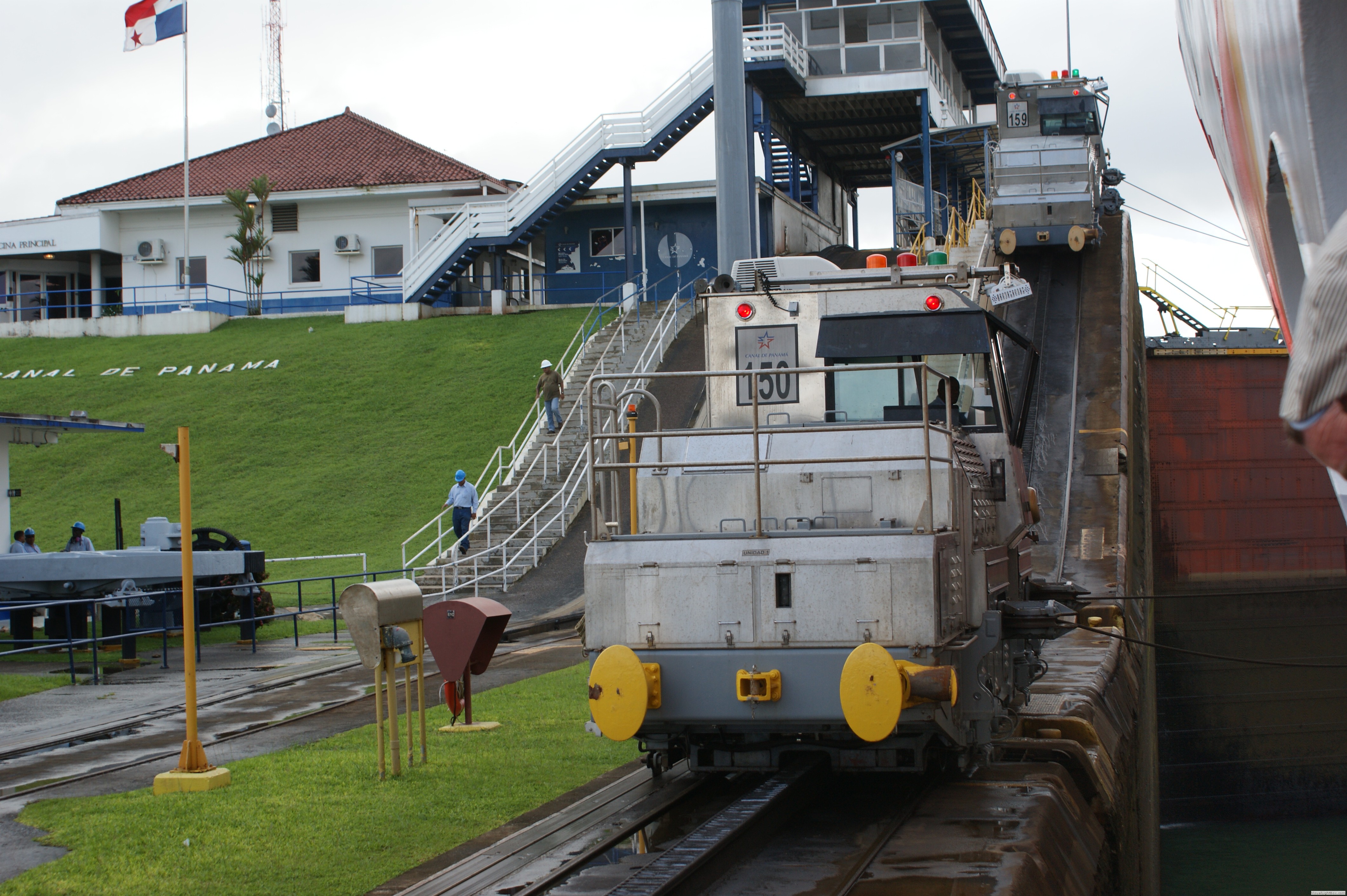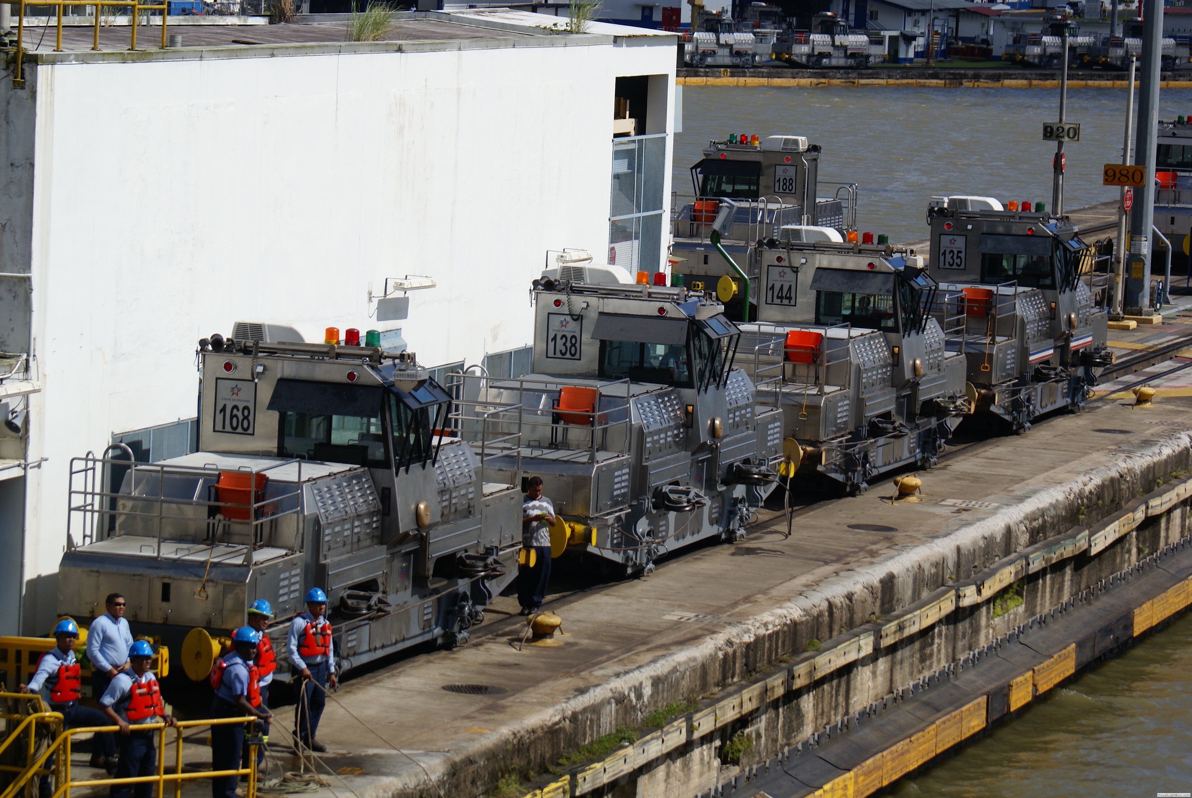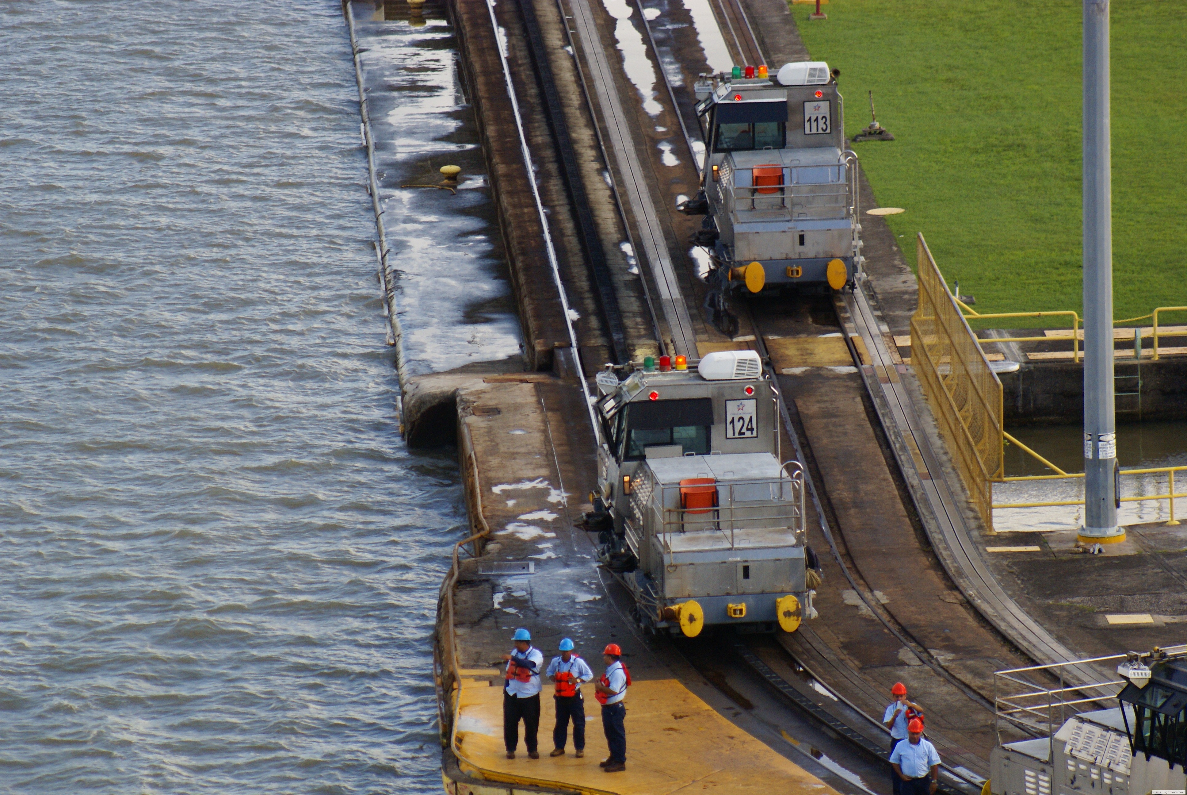Die Treidelloks (Mulis) des Panamakanals sollen in erster Linie sicherstellen, dass die Schiffe in den nur 33,53 m breiten Schleusenkammern nicht gegen die Kaimauern der Schleusen oder gegen die Schleusentore fahren. Sie "fädeln" das Schiff in die Schleusenkammern ein und halten es dann so zu sagen "in der Spur" während des Schleusens. Hier ein Artikel, der die Aufgabe der Loks sehr gut beschreibt