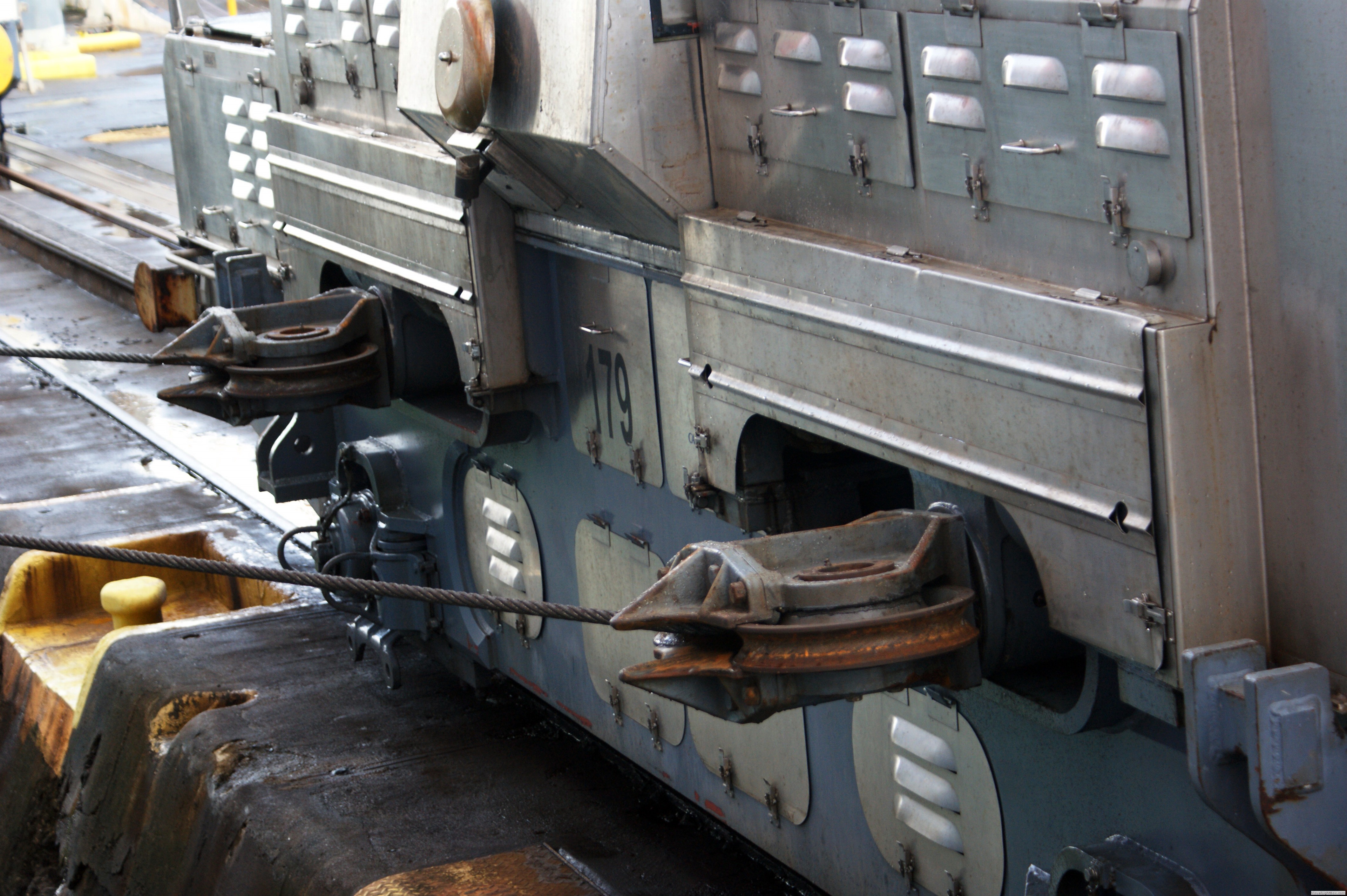 Um für eine ausreichende Traktion zu sorgen, wurden sie mit dem ZahnradSystem nach Riggenbach ausgerüstet.Zu der Frage, dass sie auch eine Sicherung gegen ein Umkippen haben, konnte ich leider keine Details finden.An anderer Stelle las ich auch, dass routinemäßig bei Schichtwechsel auch die Loks ausgetauscht werden und so mitten im Geschehen auch die Leinenverbindungen neu hergestellt werden muss, was nicht immer reibungslos klappt.