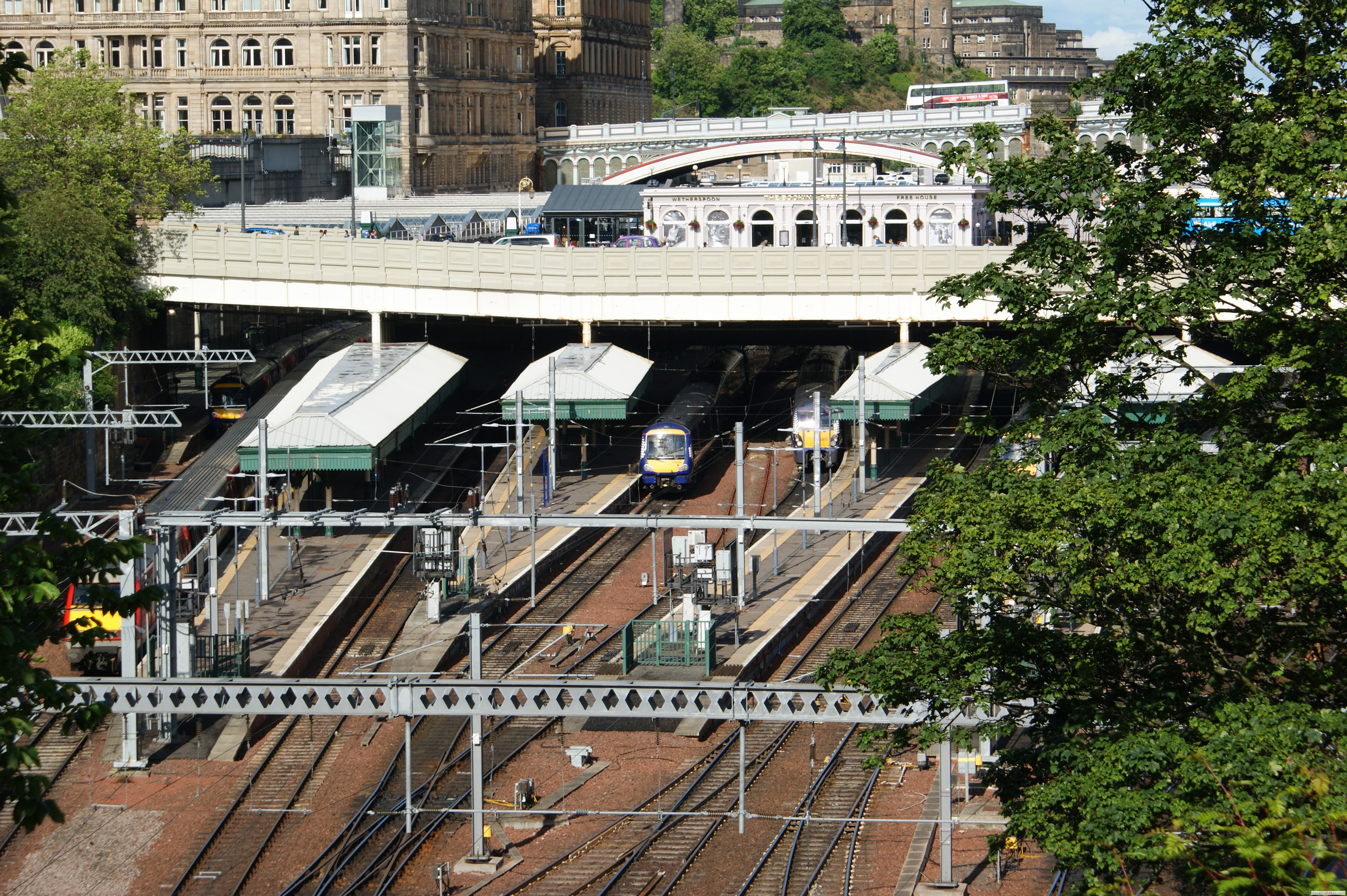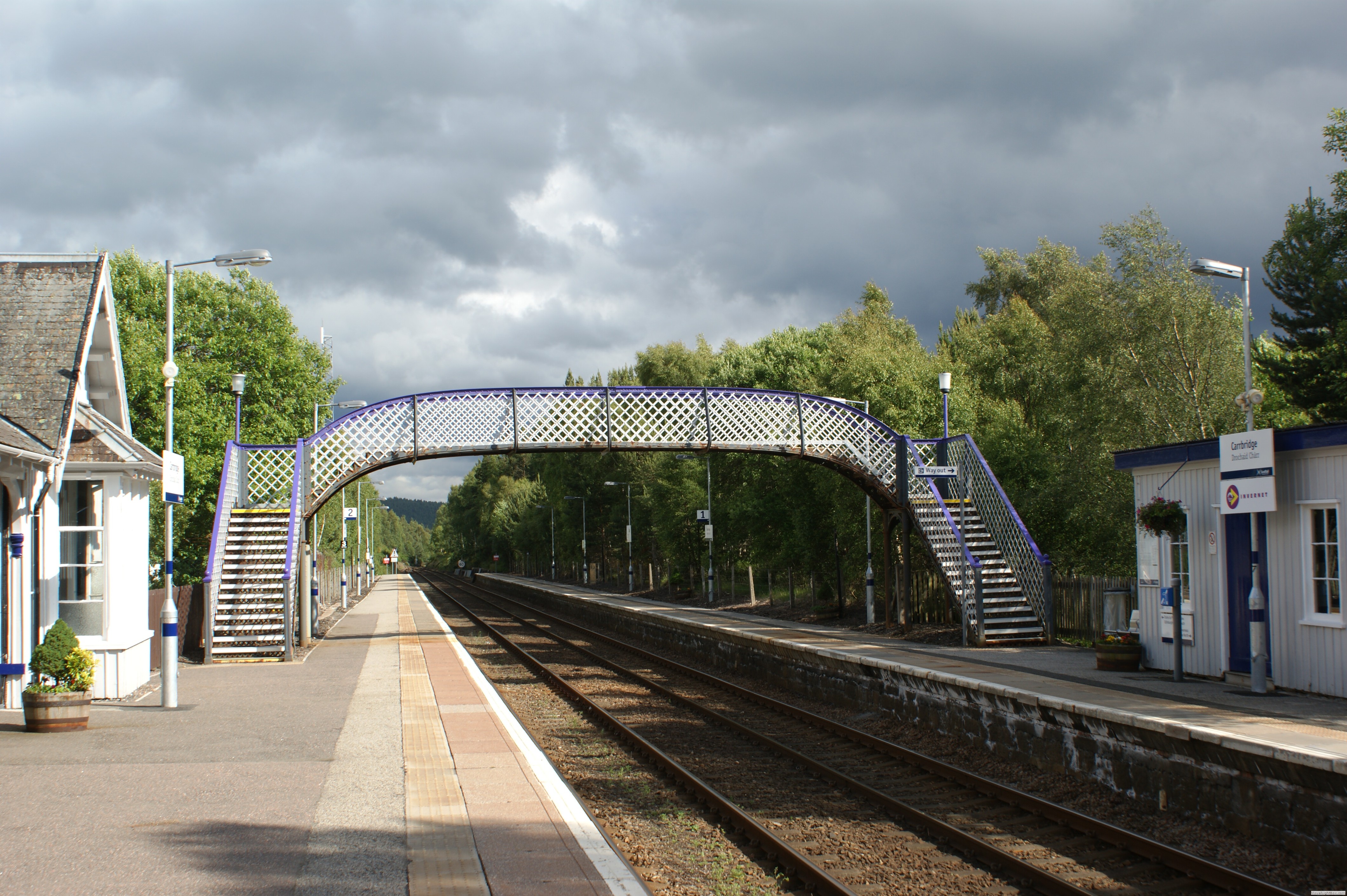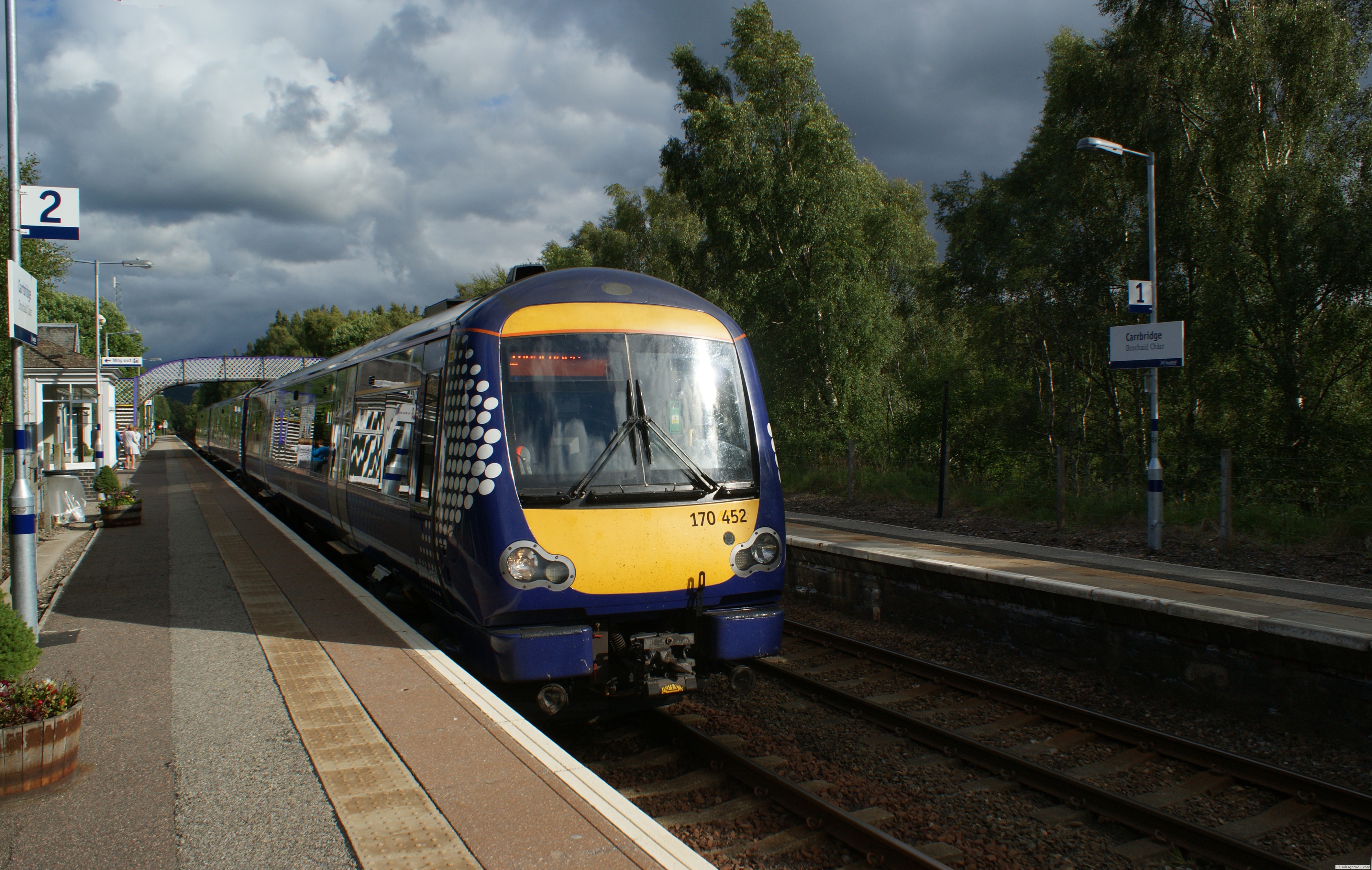 Bathgate, ca. 30 km westlich von Edinburgh gelegen, hat eine bewegte Eisenbahngeschichte. Einst Verladebahnhof für für Neuwagen an der vornehmlich für den Güterverkehr genutzten Verbindung Glasgow - Edinburgh.1956 wurde der Personenverkehr zwischen Bathgate und Drumgelloch eingestellt, 1989 dann auch der Güterverkehr.Eine durchgehende Verbindung zwischen Edinburgh und Glasgow auf der Airdrie to Bathgate Line gab es nicht mehr.Im Jahr 2003 schlug das Schottische Parlament vor die Lücke wieder zu schließen, um eine vierte Eisenbahn Verbindung zwischen den größten Schottischen Städten Edeinburgh und Glasgow zu erhalten.Diese besteht nun wieder seit 2010. Wie auf der gesamten Britischen Insel sind vornehmlich Triebzüge für den Personenverkehr im Einsatz. Der Express Fernverkehr war bis 2019 in fester Hand von VIRGIN. Eine sparsame Signalanlage traf ich in Carrbridge an. Dort wird ein Kreuzungs / Überholbahnhof mit nur zwei Ausfahrtssignalen geregelt. Sparsame Schotten eben.